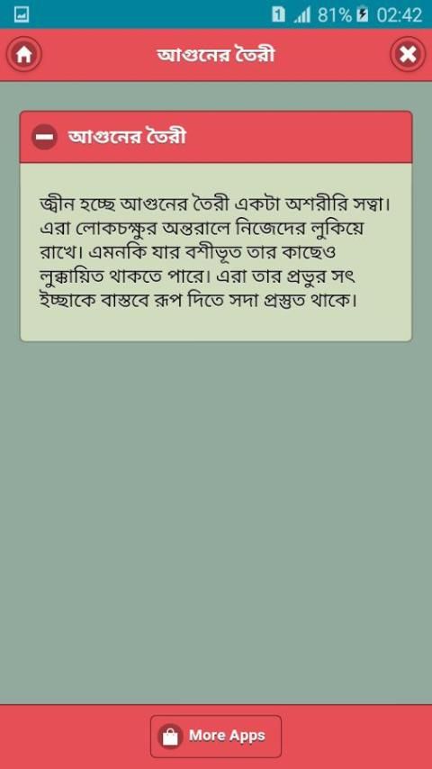 জ্বিন বশ করার উপায়. জ্বিন তাড়ানোর প্রশিক্ষন রপ্ত. ، জ্বিন মানুষের ইচ্ছা শক্তিকে দখল করে. মানুষের মুখ দিয়ে জ্বিন কথা বলে. তখন মানুষের চোখ দিয়ে জ্বিনেরা দেখে থাকে، মানুষের কান দিয়ে জ্বিন শুনে. এ ছারাও জ্বিন জাতি সম্পর্কে আর অনেক কিছু যানতে এবং জ্বিন কিভাবে হাজির জরা যায় তা যানতে এই এ্যাপসটি পরুন.