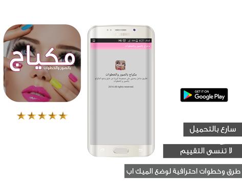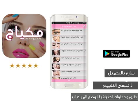 تطبيق مكياج - ميك اب بالصور والخطوات هو تطبيق يضم مجموعة كبيرة من مكياج الوجه وعيون وشفايف ويعلمك طرق وضع المكياج بالخطوات السهلة ويحتوى التطبيق ايضأ على صور الوان مكياج 2016 جدبدة وجذابة.