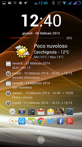 هذه هي القطعة (وليس تطبيقا، فلن تجدها في طلبك) لإظهار التاريخ والمواعيد التالية ومعلومات الطقس واختصارات لتطبيقاتك المفضلة والمستخدمة بشكل متكرر.