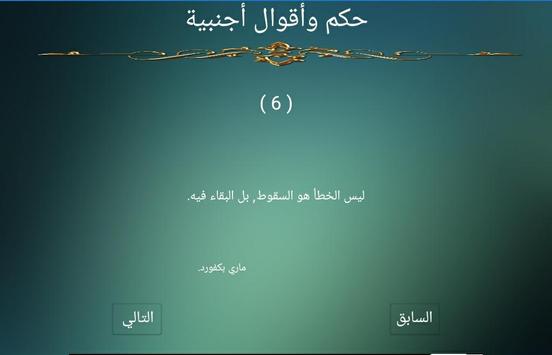 تطبيق يحتوي على أعظم الحكم و الأقوال المأثورة العربية و الإجنبية و التى ترتقي بالنفس و تكون حافزا للتقدم و الرقي ودافعا للتحدي و النجاح كل يوم، كما يحتوى التطبيق على العديد من الأحاديث القدسية الرائعة و كل الأدعية القرآنية.