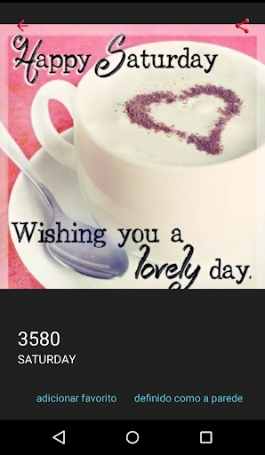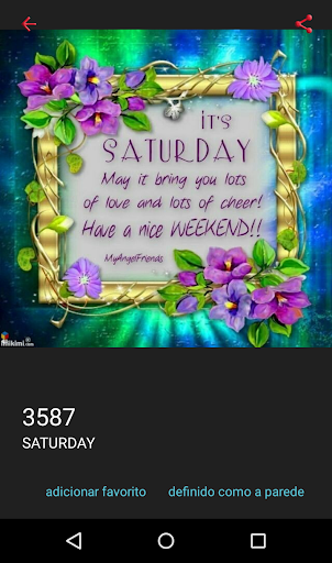 Choose Saturday images to liven up and have fun with your family's day, friends, co-workers and boyfriend, and you'll find great Saturday images. You will find beautiful Message to share by email, SMS, MMS, Google , WhatsApp, Facebook, Messenger, Viber, QQ, Line, Mixi, ICQ, Telegram, Twitter and other social networks.