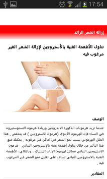 يحتوي التطبيق على عدة وصفات طبيعية تهتم بإزالة الشعر الزائد ومتجددة بستمرار و هذه بعضها :