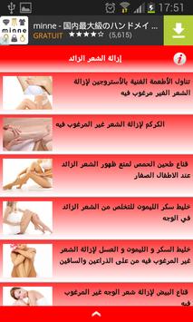 وصفات مجربة لإزالة الشعر الزائد هو تطبيق مجاني و متجدد (بدون انترنيت) يحتوي على مجموعة كبيرة من الوصفات المجربة لكل فتاة تحلم بالجمال الدائم وجسم خالي من الشعر الزائد.