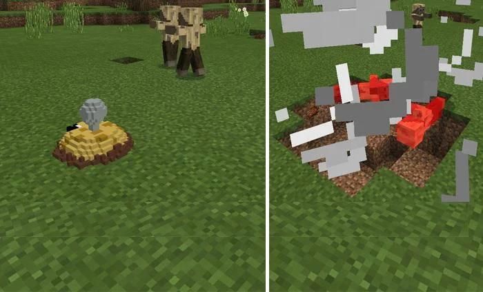 - (حبوب الكاكاو) Potatomine يعمل بشكل مشابه الألغام الأرضية MCPE العالم. يحدث انفجار كلما الكسالى (أو جيفة) سوف تظهر بجانبه!