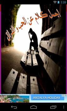 يحتوي التطبيق على صور حزينة مكتوب عليها عبارات وأشعار حزينة، حب وغرام ووداع وفراق وغدر وخيانة