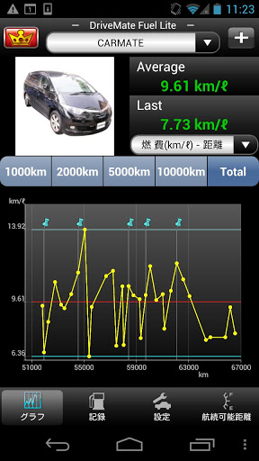 · متوسط وكفاءة الوقود الأخيرة يتم عرضها مع صورة سيارتك