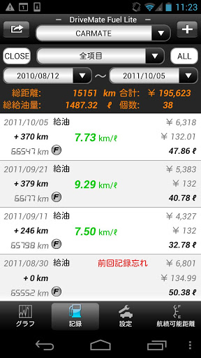 · إضافة كمية التزود بالوقود، المسافة من عداد المسافات، السعر من قبل إما لوحة المفاتيح أو منتقي الدخول والمذكرة متاحة أيضا لكل سجل.