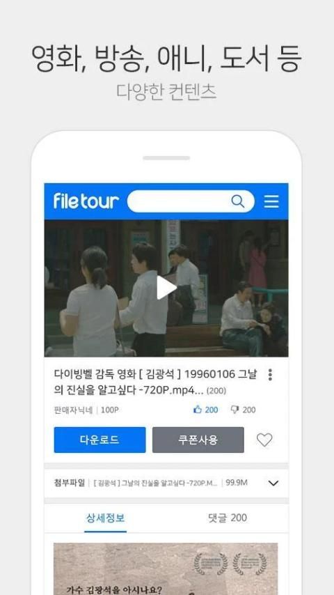 9Apps supports free android apps apk download. 30,000+ users downloaded 파일투어(Filetour) - 영화,방송,애니 무료 앱 latest version on 9Apps for free every week! With unexpected, recently it has become very popular in India. This hot app was released on 2018-01-12. Download and play this free app for android mobile phone now!