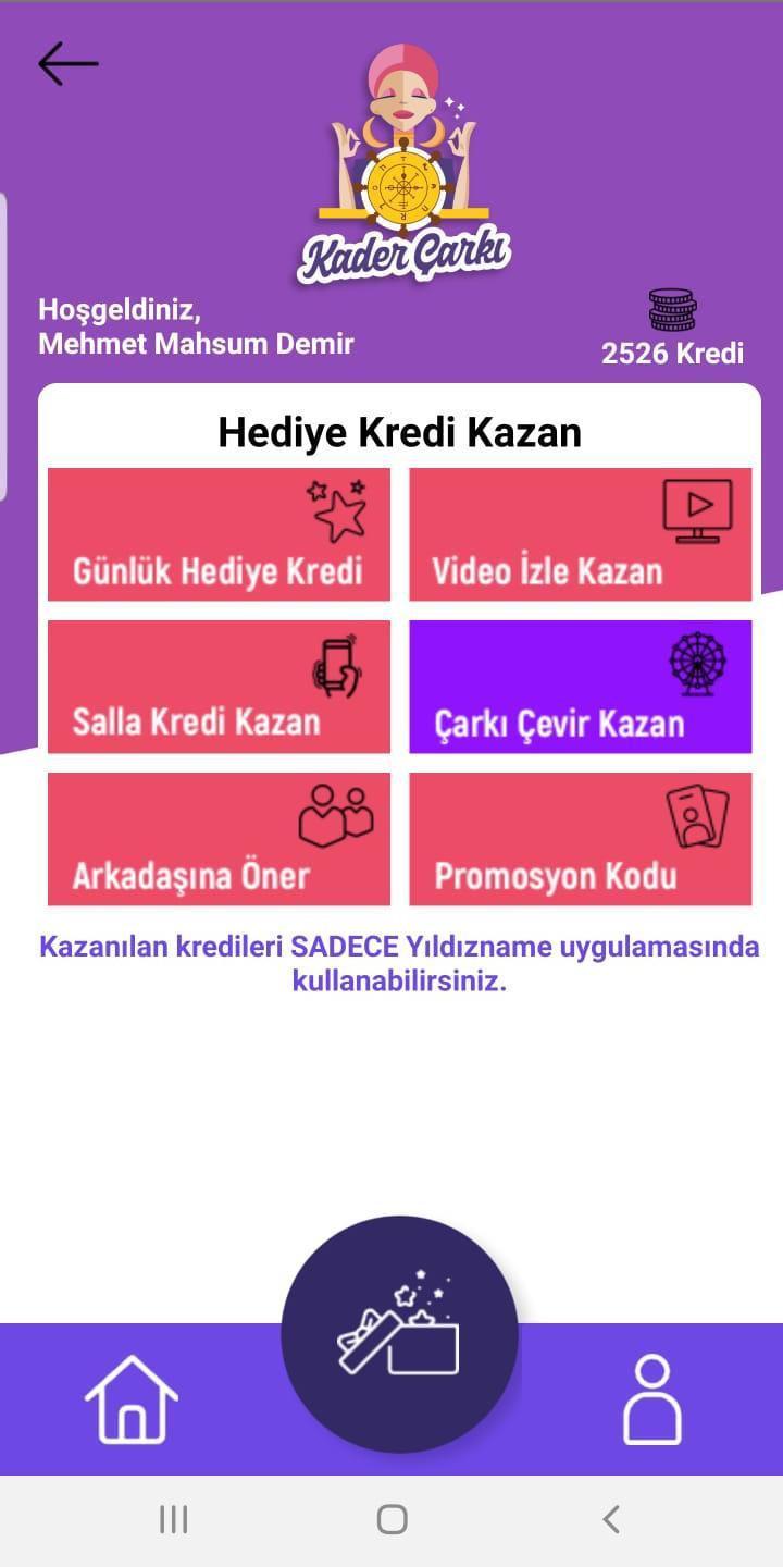 * Kahve Falı * Günlük Burç Yorumları * Kredi kazanarak fal baktırma Yıldızname üyelerine özel Kader Çarkı uygulamasıyla her gün farklı şekillerde hediye kredi kazanabilirsiniz. Bu kredilerle kahve Falı bakabilirsiniz.
