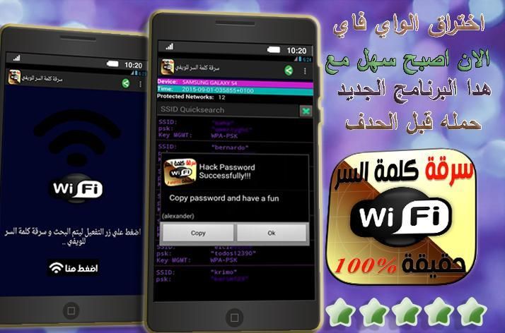 هل تبحث عن الويفي wifi ؟ هل امام منزلك ويفي wifi ولم تجد كلمة سر ؟ هل تريد كشف رمز وكلمة سر الويفي ؟ هل تبحث عن برنامج اختراق الواي فاي حقيقي 100% ؟ هل تريد معرفة كود الويفي و كشف رمز السري wifi ؟ انتا الان في المكان والزمان الصحيح الان لدينا لك برنامج يشتغل علي الهاتف ويمكنك من اختراق شبكات wifi اي ويفي تريده سوف يقوم بي كشف كلمة سر الويفي في وقت قصير، لن تبحت عن برنامج او اي شيئ لااخترق الوايفي لان بين يديك كنز، ابهر اصدقائك وعائلتك بهادا البرنامج الرائع .