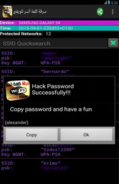 التطبيق كشف رمز وكلمة سر الويفي عبارة عن مزحة Prank