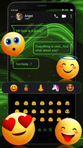 SMS Green Glow Keyboard Theme is an amazingly Shiny Green black background Keyboard Theme2018 app for phones and tablets that has many SMS Themes keyboard skins for you.
