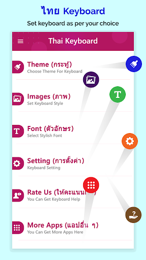 enables you to send anything in Thai writing. You can type posts in Thai Language in any social media platform and share it easily by this Thai keypad. Thai input keyboard makes mobile typing extremely easy, so you can focus on your text and thoughts. Thai Keyboard works as a default keyboard in your device, you have an option for typing in English language whenever you want to use, just switch to other language! Now every Thai word and content is easily available on your smartphone screen.