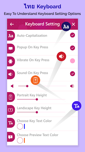 helps you to type in Thai language smoothly with eye catching themes. Select amazing themes to set your Thai keypad background or you can select your own photo from gallery or camera to make your beautiful keyboard background.