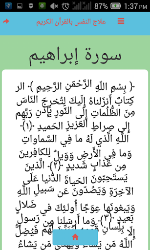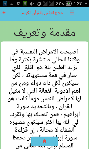 لا يختلف اثنين من المسلمين بان القران الكريم هو شفاء لما في الصدور والمقصود من ذلك هو المشاكل والاضطرابات النفسية بصفة عامة ، ونحن من خلال هذا التطبيق نقدم لكم احسن الايات القرانية لعلاج النفس ، لكن ماعليك الا المواضبة في قرائتها و حسن النية والايمان بفعاليتها اولا واخيرا ، وباذن الله ستعالجك من كل الاضطرابات النفسية ، اخي الكريم ان اعجبك التطبيق لا تنسي تقييمه لانك تساهم في مساعدة المسلمين ولا تنسي مشاركته ايضا لتعلم الفائدة.