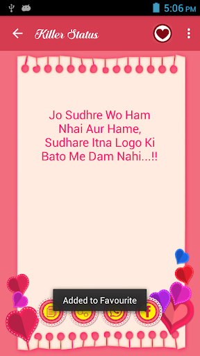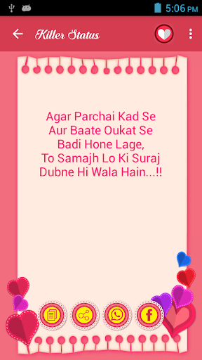 t gives you the inner strength to express yourself whole heartedly. Status can say anything and everything in a beautiful way of its own, so Download Now Killer Status and express your love feeling in beautiful words.