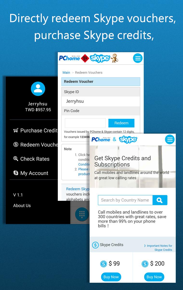 4. Support to redeem Skype vouchers, purchase Skype credits, or check your Skype account status and credit balance.