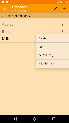 You can mark as bought an item directly from the widget or open the displayed shop list to alter, add or delete items.