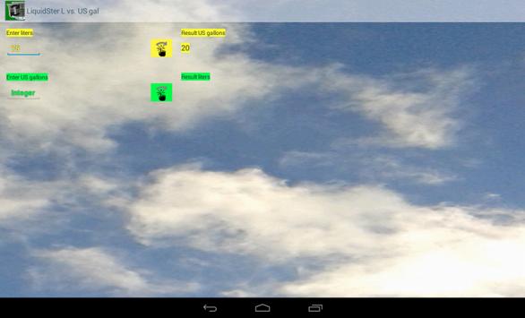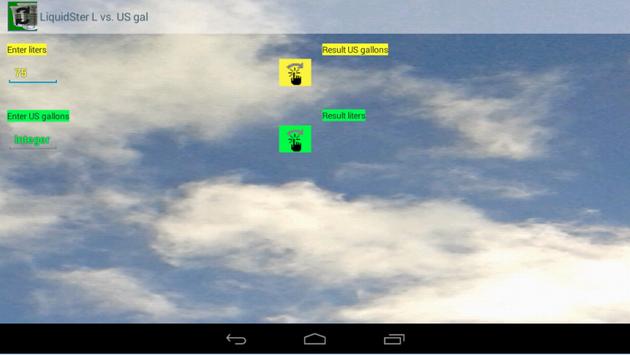 Simple and fast in use when you need to convert a unit of volume for liquid, from liters to US gallons or from US gallons to liters, with a simple graphical user interface.