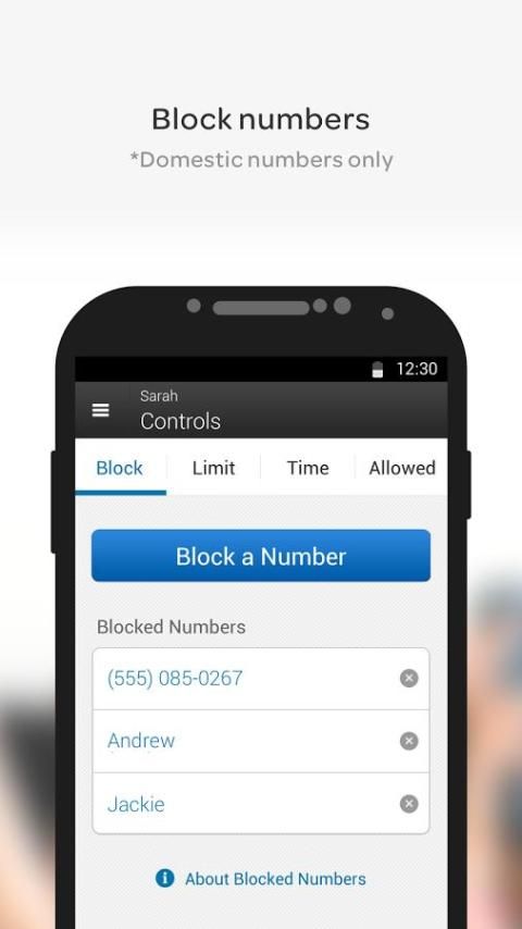 * AT & T الذكية حدود: هاتف متوافق ث / elig. خطة بيانات req'd. قد يتم تطبيق معدلات البيانات والرسائل لتنزيل التطبيق والاستخدام. يتلقى الجديد AT & T الذكية حدود المشترك 1ST 30 يوما مجانا. 30 يوم عرض جدوى. فقط عندما وصفت من قبل AT & T. ما لم تلغ، بعد 30 يوما سوف يكون لصناعة السيارات في فواتير 4،99 $ / شهر ل1 سطر أو 9،99 $ / شهر لمدة تصل إلى 10 خطوط. إلغاء في أي وقت. في حال شراء توصف من قبل AT & T، عرض، تعديل أو إلغاء اشتراكك في www.att.com/myatt أو الاتصال 1-800-331-0500. 1. وسوف حجب البيانات منع استخدام البيانات الخلوية، بما في ذلك استخدام الصورة أو الفيديو والرسائل، وخدمات الرسائل طرف ثالث مثل الكتروني والبريد الصوتي المرئي. 2. واي فاي ® تذكير لا تحد استخدام البيانات ولا تمنع الفائض. غير مضمونة 3. قيود زمنية على استخدام البيانات على وجه الدقة ولا تعمل لتقييد استخدام البيانات في حين أن المستخدم هو على واي فاي. ويسمح للمكالمات واردة في جميع الأوقات، بما في ذلك خلال ضيق الوقت، إلا من الأرقام تسمى أرقام محظور. 4. حدود الشراء لا يقيد شراء بطاقة الائتمان من مخازن التطبيق الذكي. 5. حدود النص ينطبق على رسالة فقط. لا تشمل حدود النص الصورة أو رسائل الفيديو، أو خدمات الرسائل طرف ثالث. 6. كتل أرقام الهواتف الولايات المتحدة مكونة من 10 مع رموز المنطقة صالحة ويدعو إلى 411. وقد لا منع أرقام مكونة من 10 أخرى، مثل أرقام دولية أرقام محظور. أرقام محظور لا يمنع الصورة أو رسائل الفيديو، أو خدمات الرسائل طرف ثالث (مثل iMessages® وWhatsApp®). عام: قد يتم تطبيق التقنية، شبكة والقيود الخدمات الأخرى. تغطية غير متوفرة في كل مكان. ليس كل ميزات الوصول إليها من خلال التطبيق. قد يتم تطبيق رسوم أخرى وفي restr. تهدف لخدمة الولايات المتحدة فقط. التطبيق قد تستخدم المعلومات الشخصية. هذا الاستخدام تحكمها سياسة الخصوصية AT & T وجدت في att.com/privacy.
