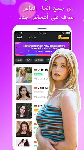 لوكا هو تطبيق دردشة فيديو رائع عبر اإلنترنت يمكنك من الدردشة مع العديد من مرساةالجمال واألصدقاء الجدد من جميع أنحاء العالم.يمكنك إجراء دردشة فيديو واحدة و دردشة فيديو عشوائية ودردشة نصية مع أي شخصمن أي مكان في العالم بنقرة واحدة ! إنها حقا طريقة سهلة وسريعة للقاء األصدقاء جدد.في" لوكا "ستدخل عالما رائع