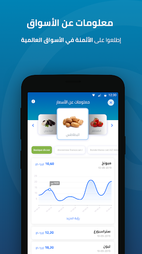 - معلومات عن الأسواق : هذه الخدمة تمكن من الاطلاع على أسعار المنتوجات الفلاحية(خضر، فواكه، الحبوب،..) في الأسواق الدولية
