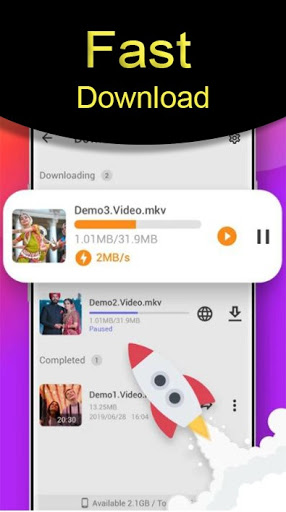 All Video and Music Downloader يتيح لك تنزيل الموسيقى ومقاطع الفيديو في فائقة HD، 3GP إلى مقاطع الفيديو عالية الجودة MP4. يدعم تنزيل الفيديو والموسيقى جميع أنواع مقاطع الفيديو أو الموسيقى القصيرة أو الطويلة، كما يدعم أيضا تنزيل الأفلام أيضا. يدعم Downloader Media كل نوع من أجهزة Android، واستمتع بأشرطة الفيديو والأفلام عالية الدقة بسلاسة مع جودة Ultra Extreme HD على الإنترنت عبر الإنترنت عبر الإنترنت.