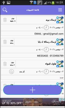 - اضافة تنبيه بإرسال رسالة نصية قصيرة أو بريد الكتروني. فقط ادخل البيانات المطلوبة مثل الرقم او البريد المرسل له والتفاصيل الاخري ودع الباقي علي التطبيق.