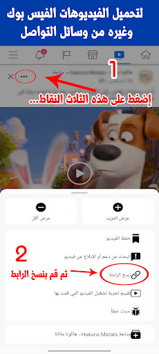 1- قم بنسخ رابط الفيدو الذي تريد تحميله من فيس بوك .