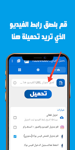 3- قم بلصق رابط الفيديو في التطبيق واختار طريقة التحميل .
