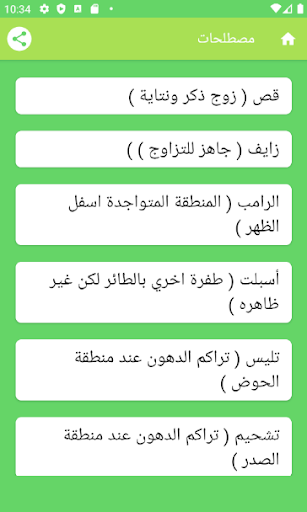 وأيضا يحتوي على قائمة من المصطلحات التي يتبادلها هواة الطيور ومحتوى التطبيق في تطوير على مستوى المعلمومات والتصميم لجعله لائقاً بهذه الهواية الرائعة