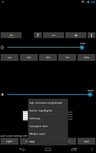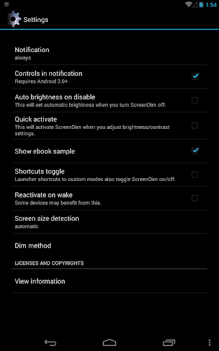 إذا كان لديك أي مشاكل مع ScreenDim، البريد الإلكتروني Arpruss@gmail.com قبل مغادرته مراجعات سيئة. هناك الكثير من الاختلاف في كيفية التعامل مع الأجهزة المختلفة مع سطوع الشاشة، وقد أكون قادرا على ضبط Screendim للعمل بشكل أفضل.