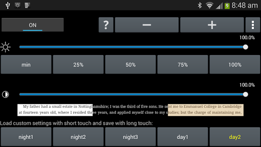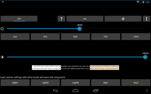هل لا تزال سطوع الشاشة الدنيا مشرقا جدا؟ خافت شاشتك تحت ما يسمح به جهازك عادة للاستخدام المريح في البيئات الداكنة، والقراءة في السرير، وعلم الفلك الهواة، وما إلى ذلك!