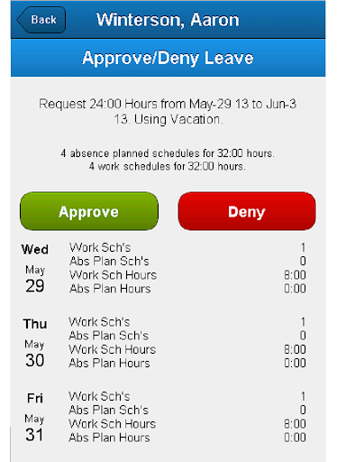 Manager Mobile leverages your employer’s configuration of Attendance on Demand so that you can perform supervisory functions quickly and easily from your phone.