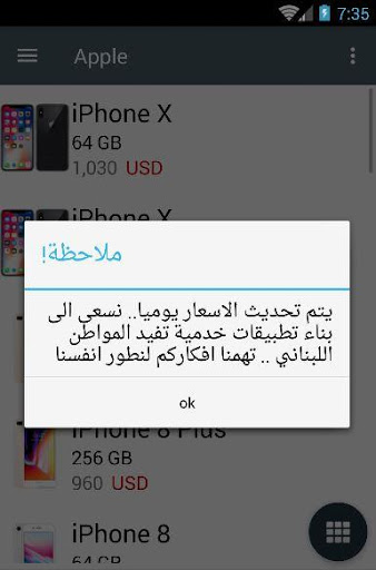 متوسط أسعار الجوالات في لبنان وبالدولار الامريكي - جميع الانواع المعروفة وتهمنا اقتراحاتكم لاضافة انواع اخرى - يتم تحديث الأسعار بشكل يومي - يمكنك الاطلاع على مواصفات الجهاز كاملة - نرجو تقييمنا وابداء ملاحظاتكم واقتراحاتكم