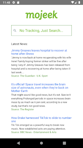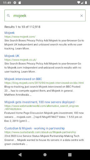 يوفر تطبيقنا إصدارا على الجهاز من محرك البحث Mojeek، والذي يتضمن الميزات التالية: