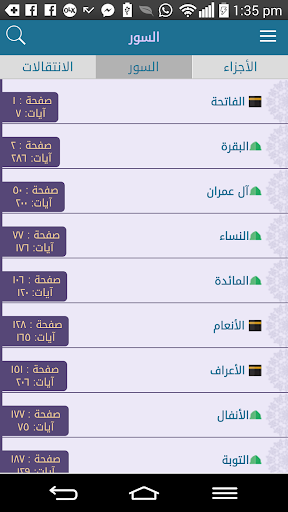 • عرض القرآن الكريم –رواية حفص-على هيئة صفحات سهلة التصفح والقراءة والتنقل فيما بين الصفحات والآيات بسهولة.