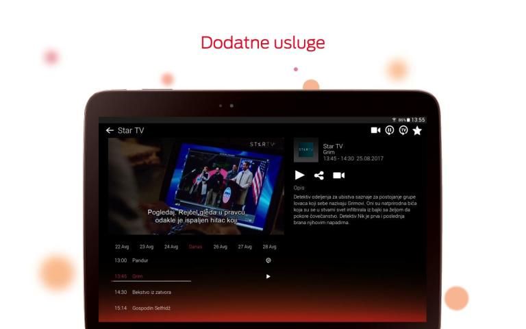 يمكن تطبيق TV MTS لك أن تذهب المحتوى التلفزيوني، بالإضافة إلى شاشة التلفزيون، ومشاهدة على الهاتف أو الجهاز اللوحي والكمبيوتر. هناك مجموعة واسعة من القنوات التلفزيونية والمحتوى من نادي لدينا شريط فيديو، وإمكانية أن لبعض قنوات التلفزيون باستخدام خدمات إضافية 72 ساعة الى الوراء، ننظر إلى الوراء، ومراقبة وتسجيل المنشآت الأبوية.