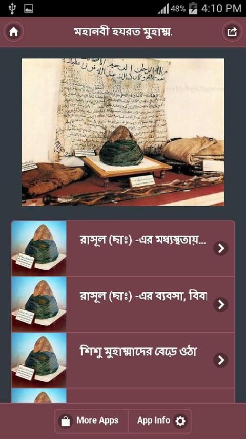 এই অ্যাপটি আমাদের প্রিয় নবী হযরত মুহাম্মাদ (সা :) এর জীবনির উপর করা. আশা করি আপনাদের ভালো লাগবে. আপনাদের মতামত ফিডব্যাক দিয়ে জানাবেন.