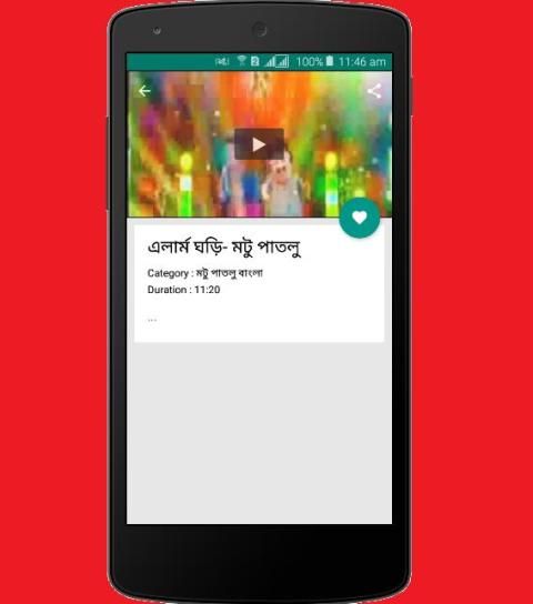 আপনাদের পছন্দের বাংলা কার্টুন গুলো খুব সুন্দরভাবে গুছিয়ে আছে এই অ্যাপে. আপনি প্রতিদিন নতুন নতুন কার্টুন ভিডিওর আপডেট পাবেন. আপনি চাইলে আপনার পছন্দের বাংলা কার্টুন গুলো সুন্দর করে বুকমার্ক করে রাখতে পারবেন.