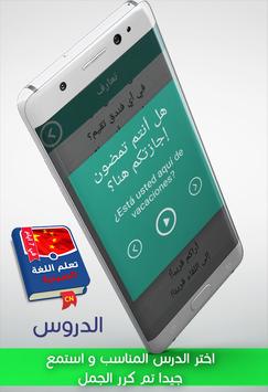 الصينية هو تطبيق شامل يحتوي على عدة أقسام وعدة محادثات مختلف على حسب كل حالة كل هذا بالصوت لتسهيل التعلم وبدون انترنت كما يحتوي ايضا هذا التطبيق على طرق بسيطة سهلة وجديدة تسهيل التواصل إضافة الى نطق الكلمات.