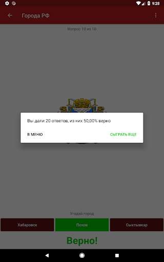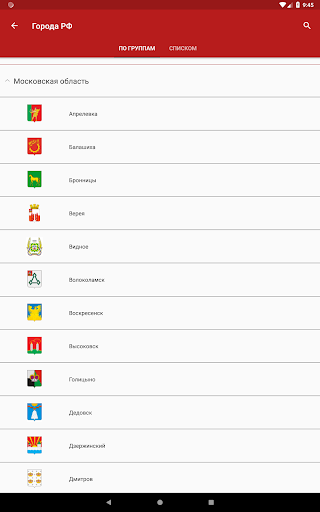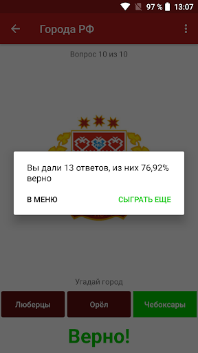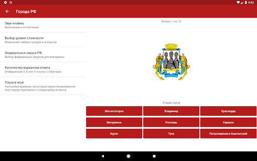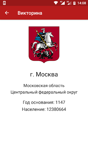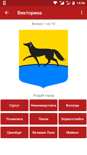 اختبار اختبار في معطف الأسلحة في مدن الاتحاد الروسي. في هذا التطبيق، يمكنك الدراسة في نموذج اللعبة وتعلم شيئا جديدا حول مدن روسيا.