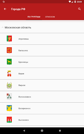 * دليل المدن ومعطف الأسلحة، والتي لا تستطيع أن ترى ليس فقط صورة معطف الأسلحة، ولكن أيضا تاريخ قاعدة المدينة، تنتمي إلى منطقة واحدة أو منطقة أخرى، وكذلك التقريب عدد السكان؛