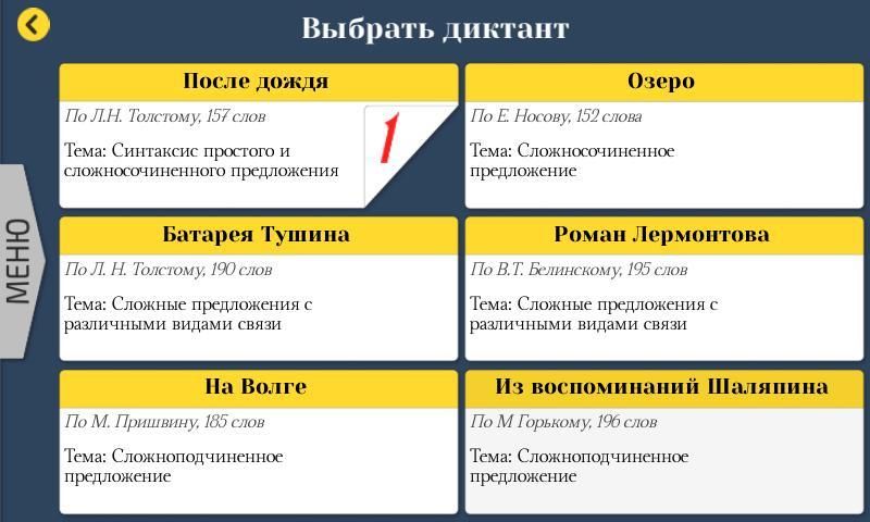 Хочешь проверить грамотность и подготовиться к экзаменам по русскому языку? Для тебя лучшие преподаватели русского языка и литературы составили этот сборник школьных диктантов. Подготовка к ЕГЭ, итоговый диктант, контрольная по русскому языку – все в одном приложении, просто и доступно.