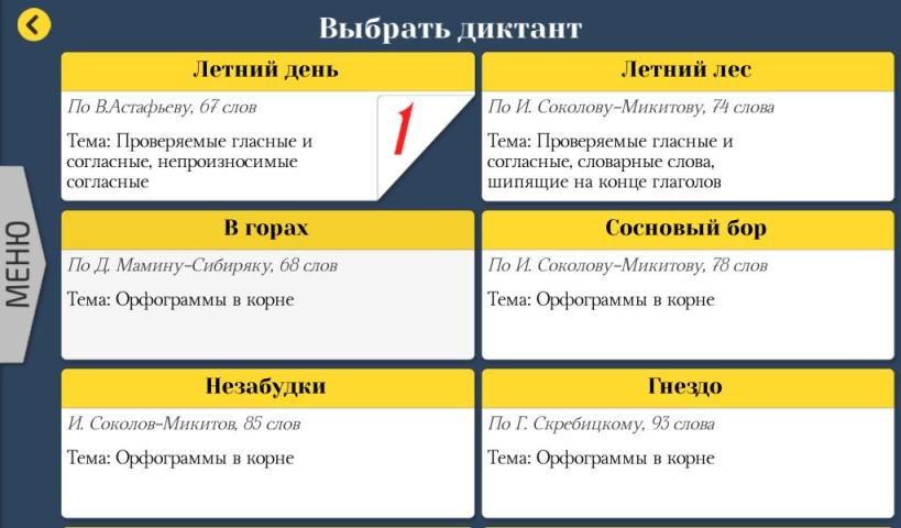 Простой и удобный интерфейс, доступный даже первокласснику. Чтобы написать диктант по русскому языку, нужно сначала выбрать в меню свой класс, а затем выбрать пропущенную букву (буквы) и знаки препинания в тексте. После выполнения задания ты увидишь, что сделано правильно, а что нет. Здесь ты можешь узнать честную оценку своего знания русского языка.