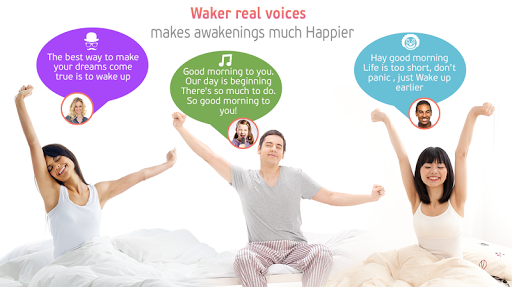 Waker هو أول من أفضل تطبيق إنذار أفضل من نوعه يستيقظك كل صباح مع التسجيلات من الناس الحقيقيين. الآن يمكنك الآن أن تستيقظ مع الأصوات من الرجال الحقيقيين والنساء والأطفال. اضبط ناقوس الخطر وفقا لتفضيلاتك الخاصة بأصوات مختلفة مع موسيقى الخلفية المهدئة.