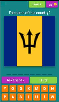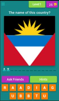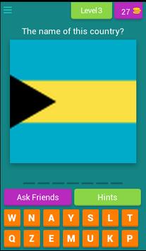 It is a quiz where you will have to guess the names of North American Countries by looking at their flags. for each name of country discovered, a point will be awarded. those points will be used as help to give hints in game and erase letters to help you guess the name of the country.