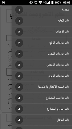 نظم الاجرومية للقلاوي اما بجر قائمة من اليمين، لتظهر لك قائمة تصفح الأبواب الخاصة بتطبيق نظم الاجرومية للقلاوي.