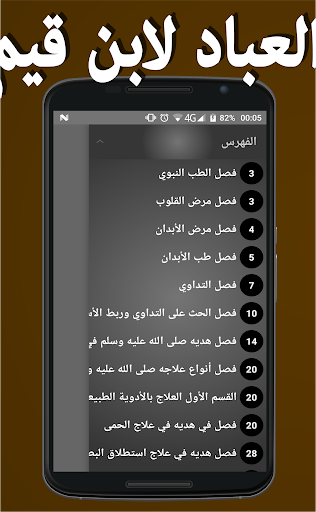 • بمجرد فتح قائمة التصفح في تطبيق زاد المعاد في هدي خير العباد لابن قيم الجوزية الجزء الرابع يظهر لك الباب المفتوح حاليا بخلفية داكنة.