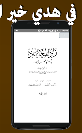 • يحتوي تطبيق زاد المعاد في هدي خير العباد لابن قيم الجوزية الجزء الرابع على قائمة منسدلة تحوي هي الأخرى زرين أسفلين للتقدم بنسبة صغيرة في الأبواب.